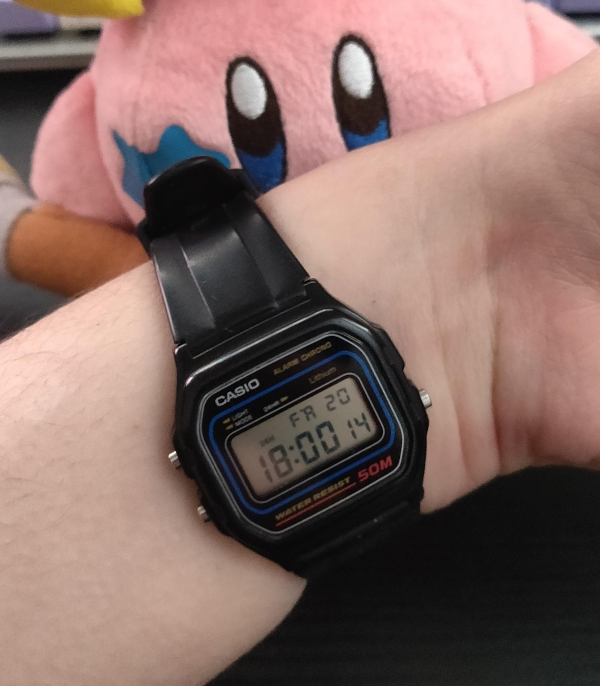 One thing that’s really helped me (and I would actually recommend, unlike my podcast listening setup) is getting a cheap digital watch. It’s a basic Casio model that seems to be part of the autism starter pack, alongside big glasses and an IKEA shark plushie. This has eliminated the need for taking my phone out of my pockets just to check the time. It’s great, highly recommend doing this if you’re also someone who is easily distracted.